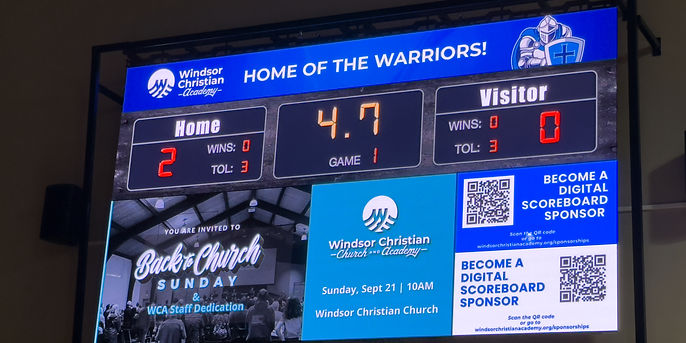 The Digital Scoreboard is part of the Worship Center Upgrade Project. The project is led by Pastor Steve who will also be creating the media content for the new scoreboard. Keep an eye out for an email from Steve in regards to the details of your sponsorship. You can also email him at steve@windsorchristianchurch.com if you have any questions.
